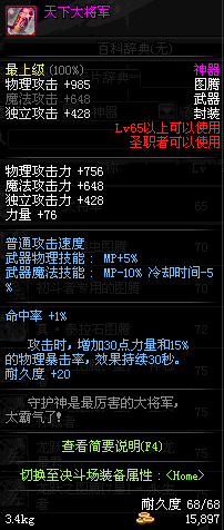| 65 | 天下大将军 | *Lv65~71普通地下城怪物掉落 *在加百利的神秘商店购买 |