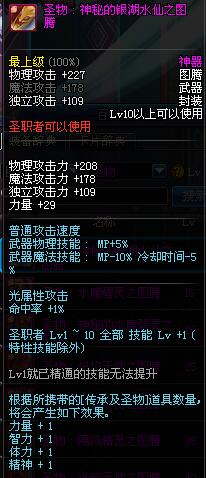 | 10 | 圣物 : 神秘的银湖水仙之图腾 | *Lv8~14普通地下城怪物掉落 |