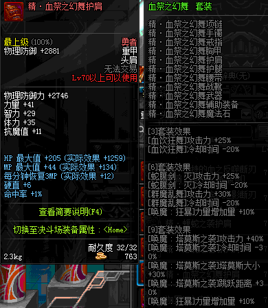 | 70 | 邪神之怒护肩 | *Lv69~76深渊地下城怪物掉落 | 邪神之怒套装 | |