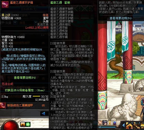 | 85 | 断肠绝伤之黑鳞肩甲 | *昨日之巴斯顿 掉落 (在远古地下城里出没。) *从NPC鲁特的物品店出售的[断肠绝伤防具礼盒]中获得 |